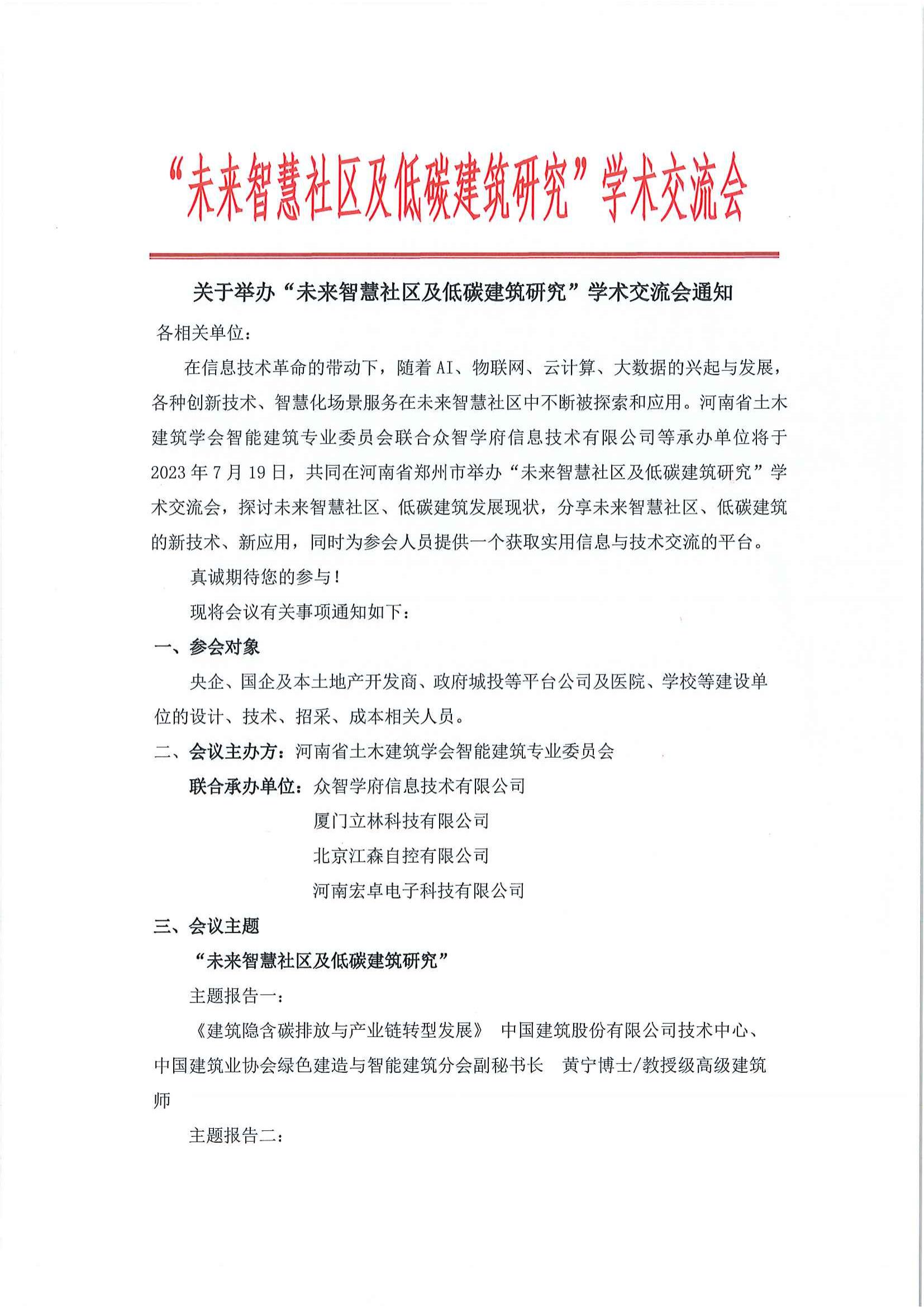 “未来智慧社区及低碳建筑研究”学术交流会通知